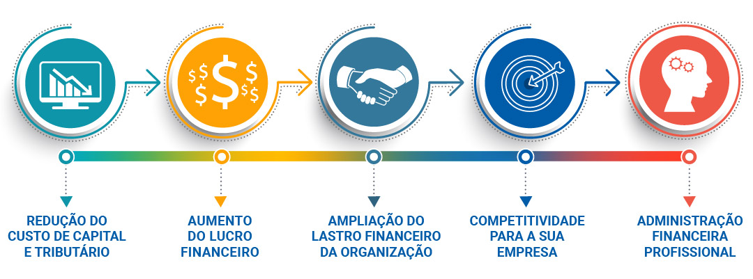 Inteligência Financeira: remodelamos sua organização do ponto de vista Econômico-Financeiro com o objetivo de potencializar os resultados da sua organização. O objetivo é reduzir o custo de captação dos investimentos necessários para o crescimento da sua empresa, através de captação de recursos subsidiados e incentivos fiscais.